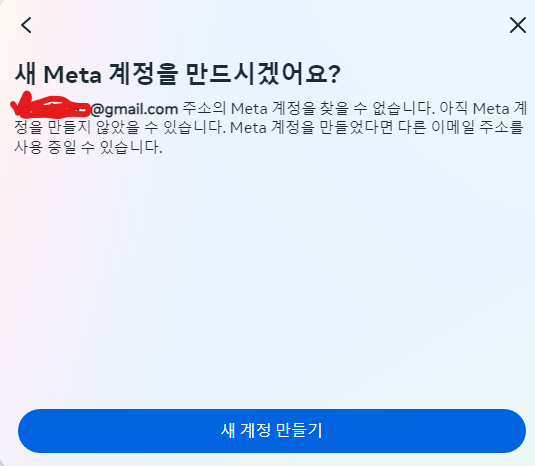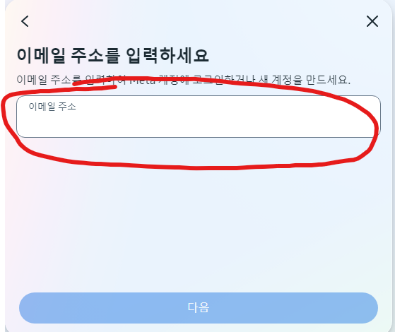 Meta 계정에 가입하거나 로그인하기 버튼을 눌러주세요.