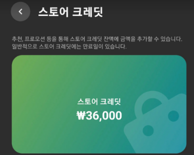 스토어 크레딧 36,000원이 들어왔다면 정삭적으로 완료되신 겁니다.
